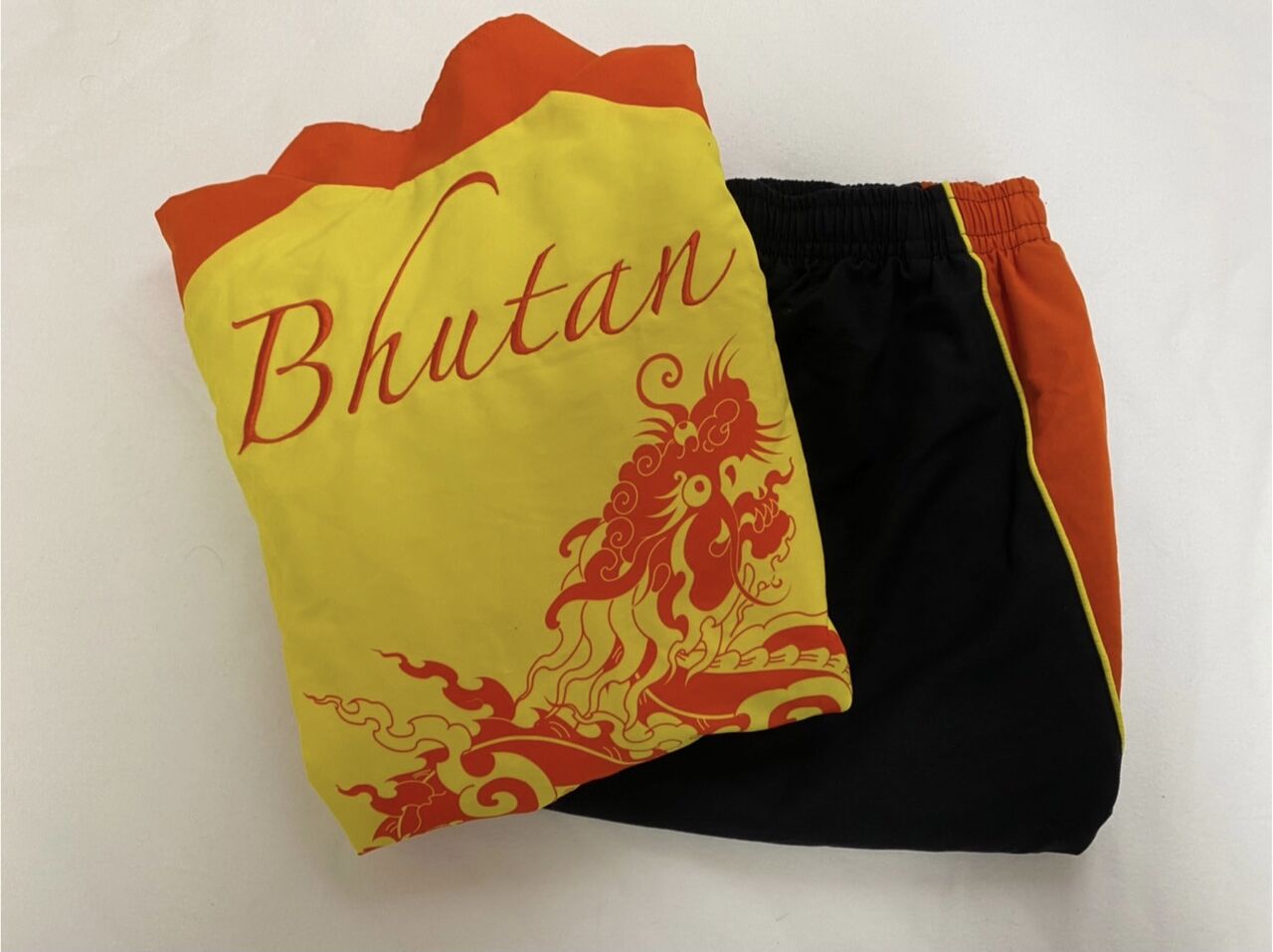 一目でブータンチームとわかる、チームウェアです。