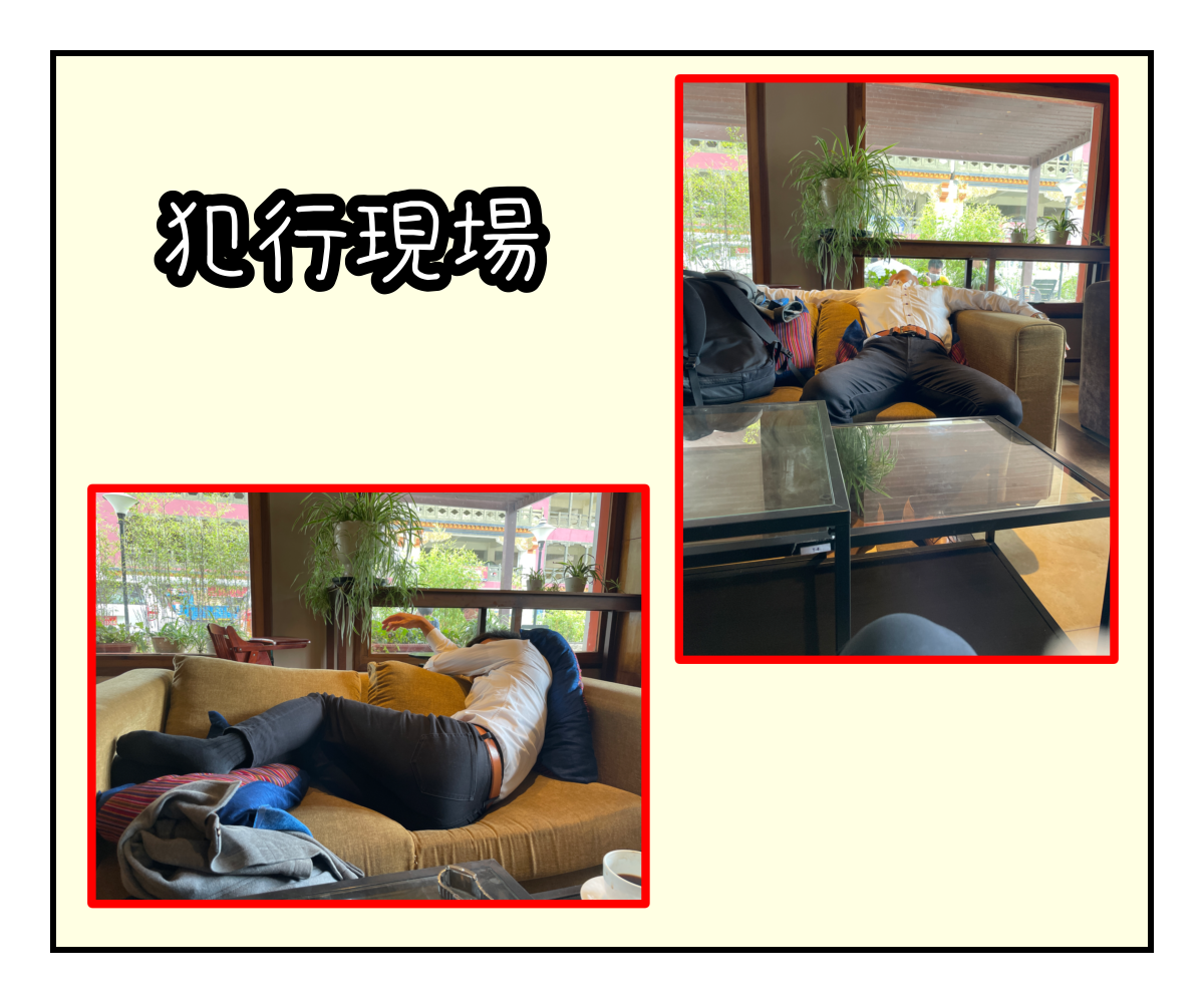 休日はよく一緒にカフェに行くのですが、彼はだいたいどこでも寝ます。