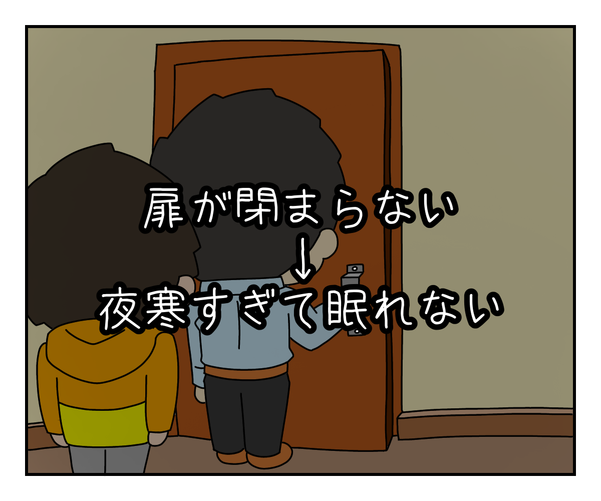 方法としては、扉の枠(木でできた部分)を歪んだ扉の形に合うようにノコギリで削るというもの。