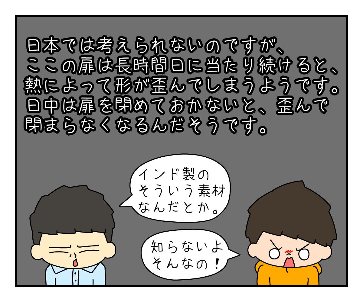 「扉は日光で歪むものだから、日中は閉めておかなければいけない」というのがこの国の常識だったら、僕らに非があるということで修理代や買い替え代を請求されるかもしれません。