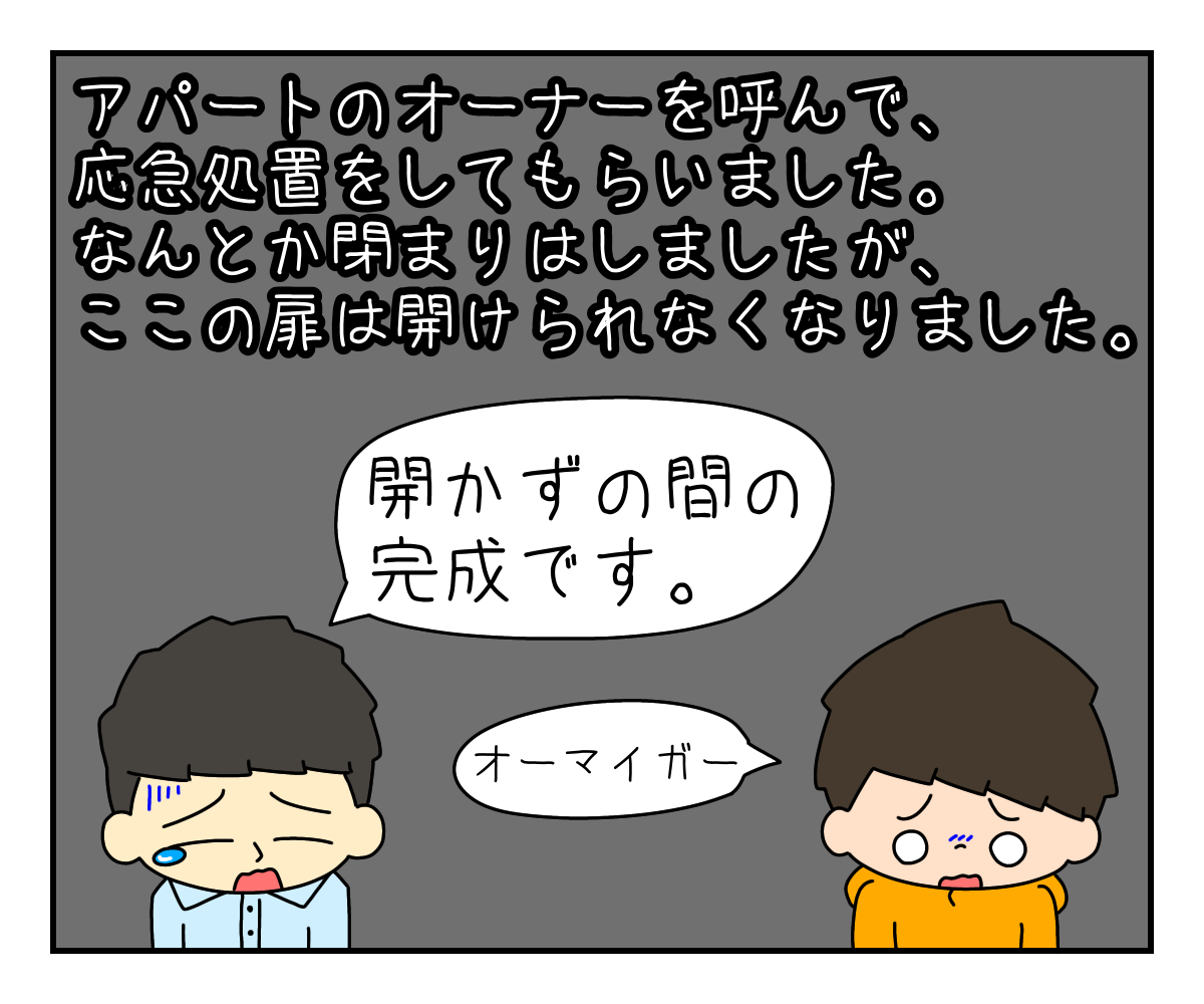 結局その日のうちにアパートのオーナーに来てもらい、応急処置をしてもらいました。