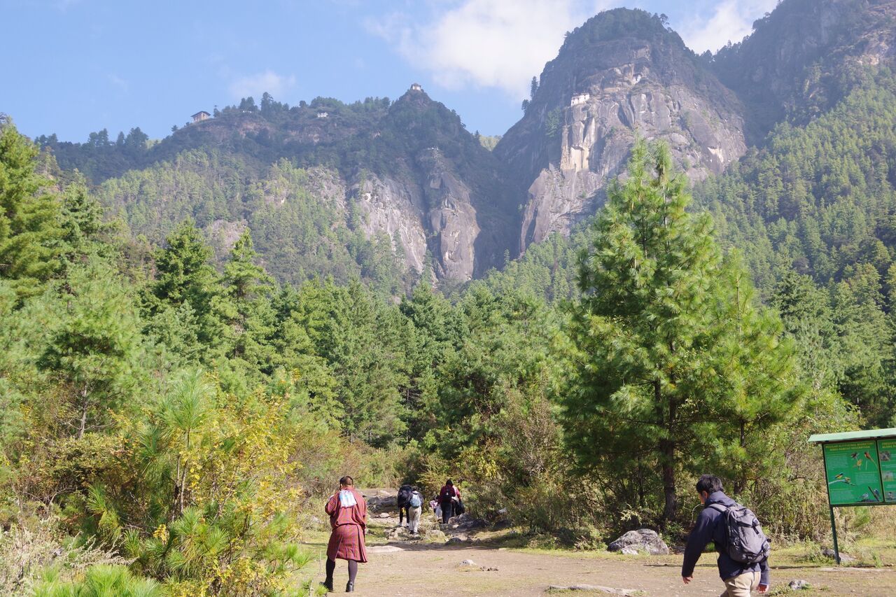 タクツァン僧院のふもとまで車で行き、ふもとからは歩いて向かいます。