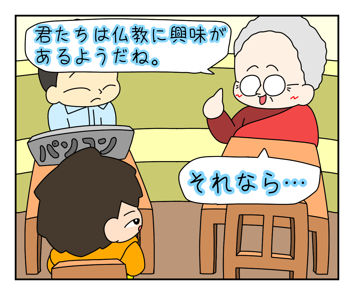 その数分後にこの僧が来て、たまたま隣に座ったんです。