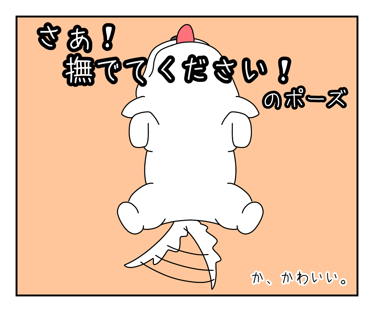 その中でも1番小柄な白い子は、お腹を出して「撫でろ要求」をしてきます。