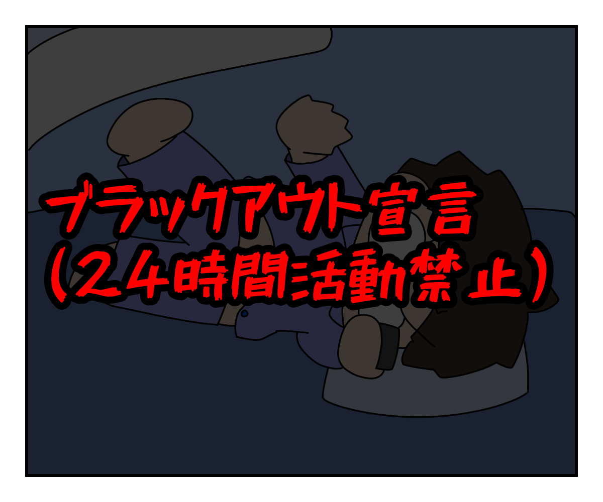 24時間の活動禁止(ブラックアウト)宣言が、政府によって出されていました。