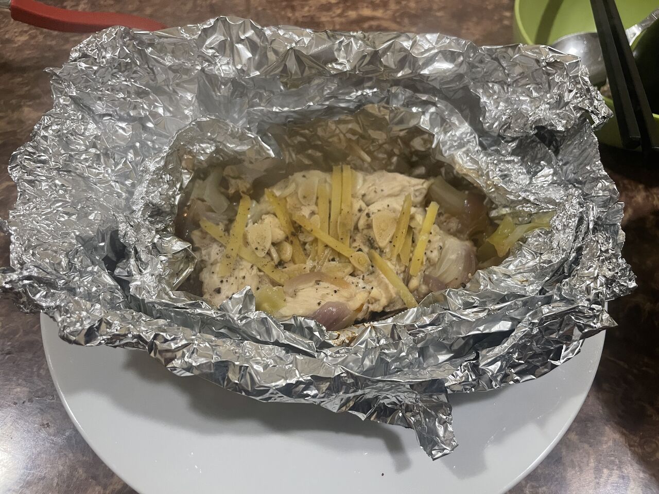 鶏胸肉とキャベツ、玉ねぎのホイル焼きバター醤油味。これもとっても美味しかったです。