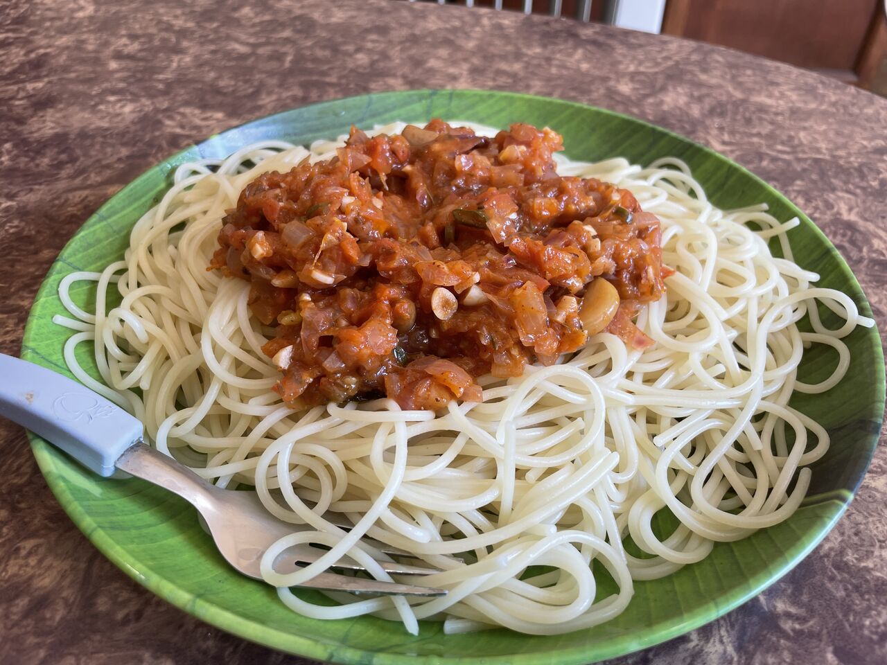 これは今日作ったトマトソースパスタ。