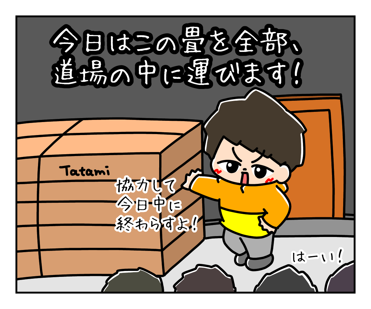 そんなわけで畳が届いたので、柔道協会のメンバーで道場に運び入れをしました!