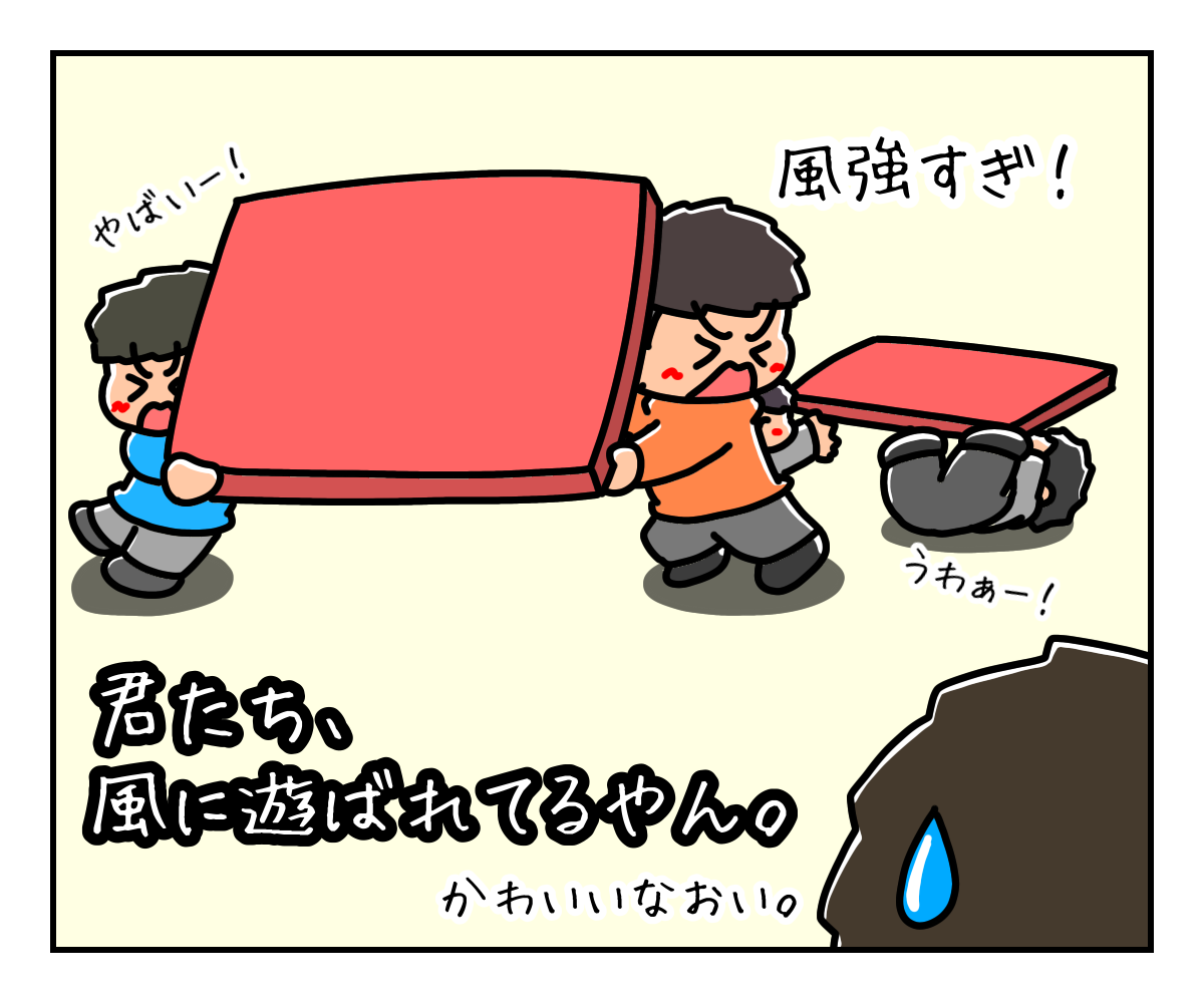そんな子が運ぶ時に…大きな畳が風に煽られて、畳とともに流されることが多くて。