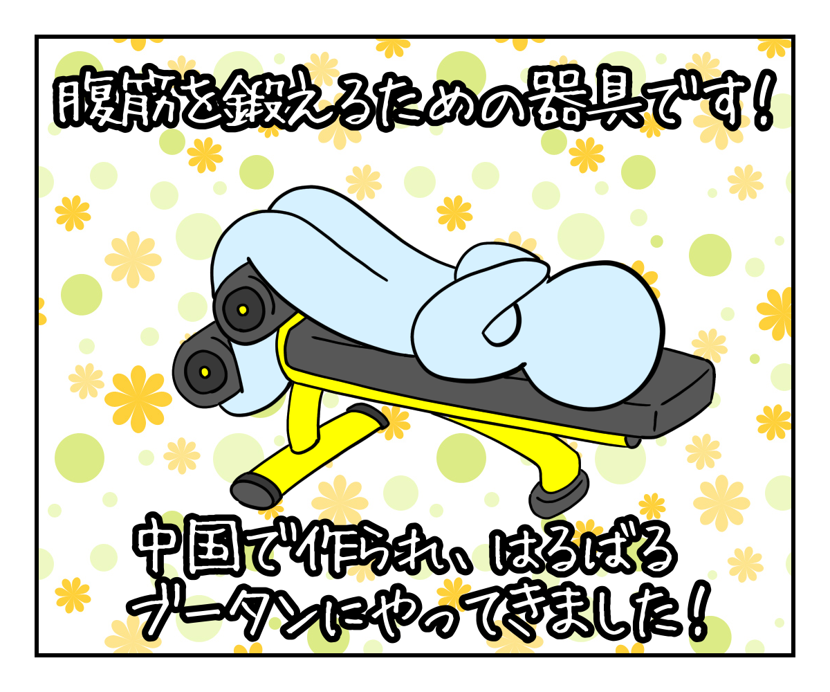 トレーニングのために買われたと思ってブータンに来た器具が、ベッドとして使われるなんて。トレーニング器具からしたら不本意だろうな。
