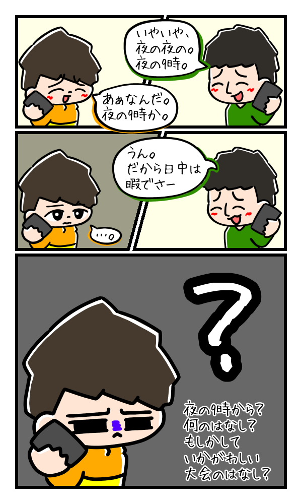 日中の大会と比べて実質稼働時間が短いため、本来なら1日で終わる大会を3日間かけて行うようです。