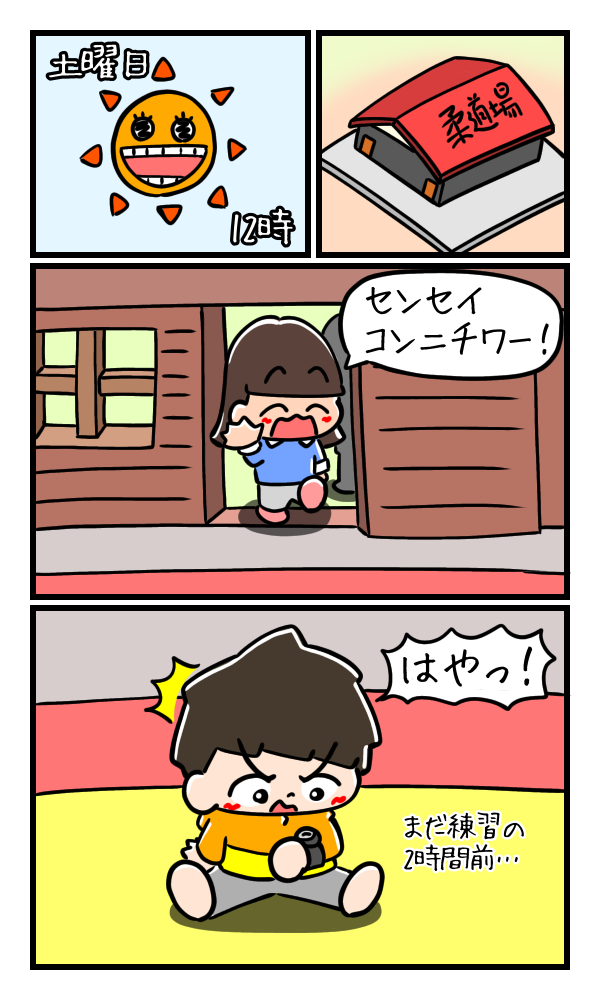 午後の練習のスタートは14時。なのに早い子は2時間前に道場にくるんです。