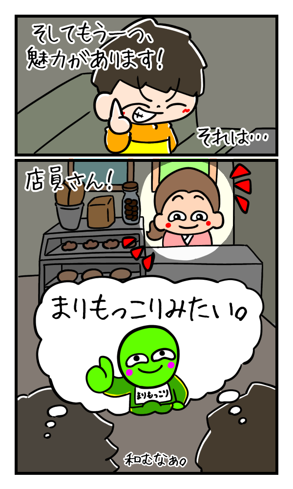このキャラクターに似た店員。なんだか僕ら2人は気に入っています。