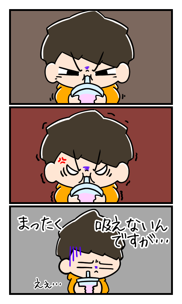 びっくりですよ。ストローは太めなのですが、一向に吸えない。