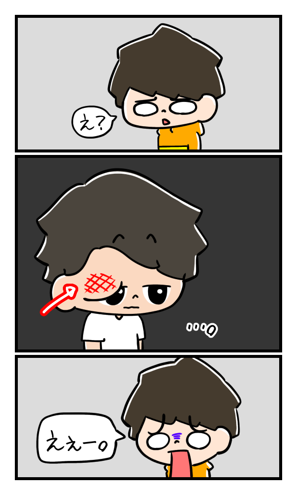 手足だと言われなければ気づかないだろうし、胴体だったら服に隠れています。首なんかでも気にして見ないとわからないでしょう。だけど目は一発でわかります。頬やおでこなんかよりも目立つ気がしています。