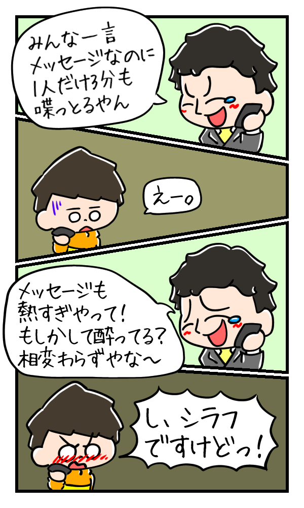 それにメッセージが…熱すぎたようです。とてもシラフで言っているとは思えないだとか(笑)