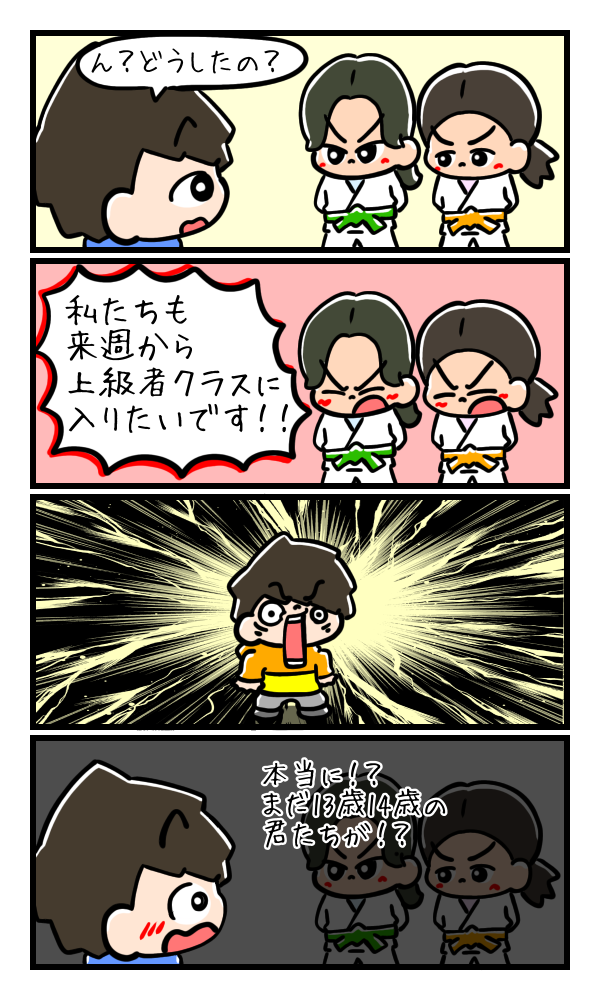 そんな時に、2人の女の子が上級者クラスに入りたいと言いはじめました。そりゃ嬉しいです。彼女たち2人は上級者クラスの練習を見たことは何度もあります。その上で、入りたいと思ってもらえる空間だったのかなと。