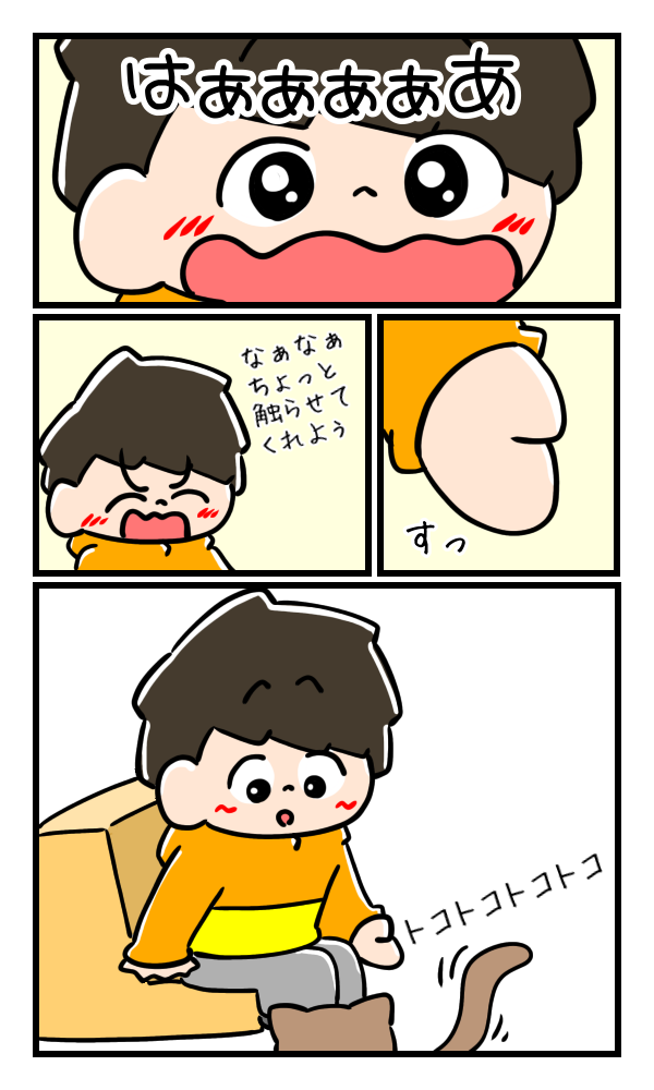 片手で本を読みながら片手で撫で続けて、1時間ほど僕もくつろぎました。