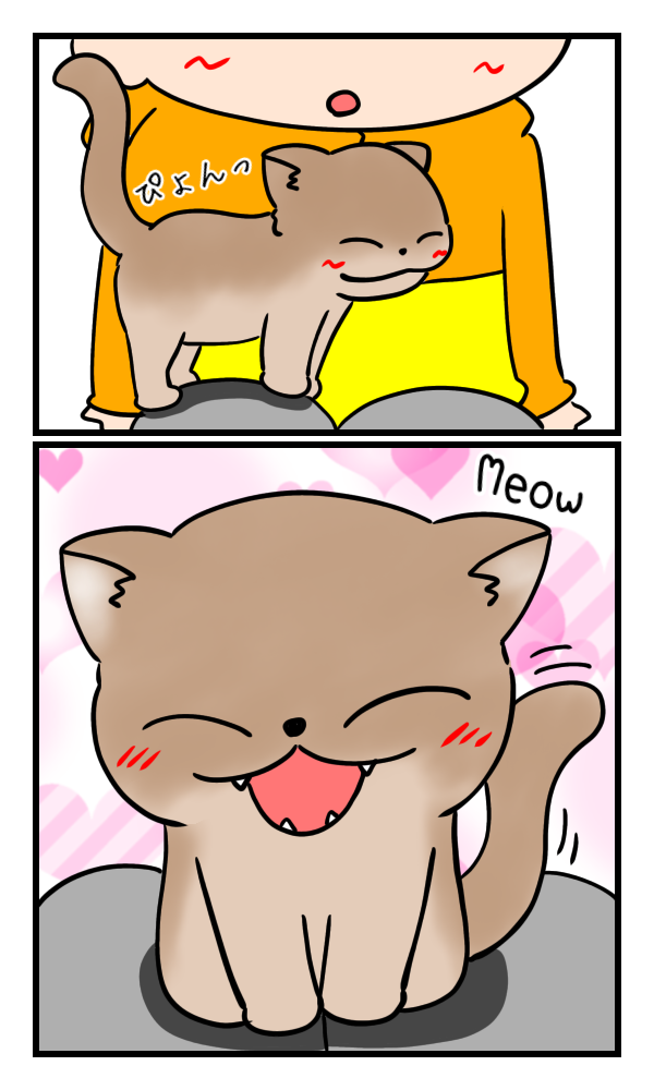 膝の上に乗ってきました。そして座り込んで、完全にくつろぎモード。