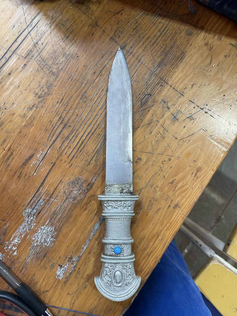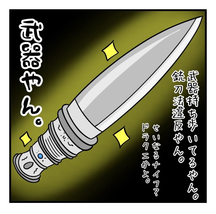刃渡り15cm以上はありますね。日本だとガッツリ銃刀法違反ですね。