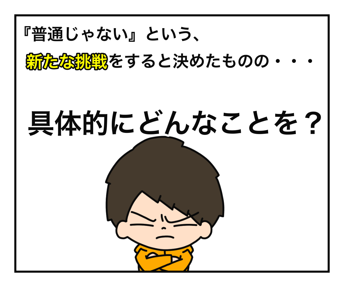 さて、『普通じゃない』という、新たなことに挑戦をすることには決めたものの、具体的に何をするかは未定。