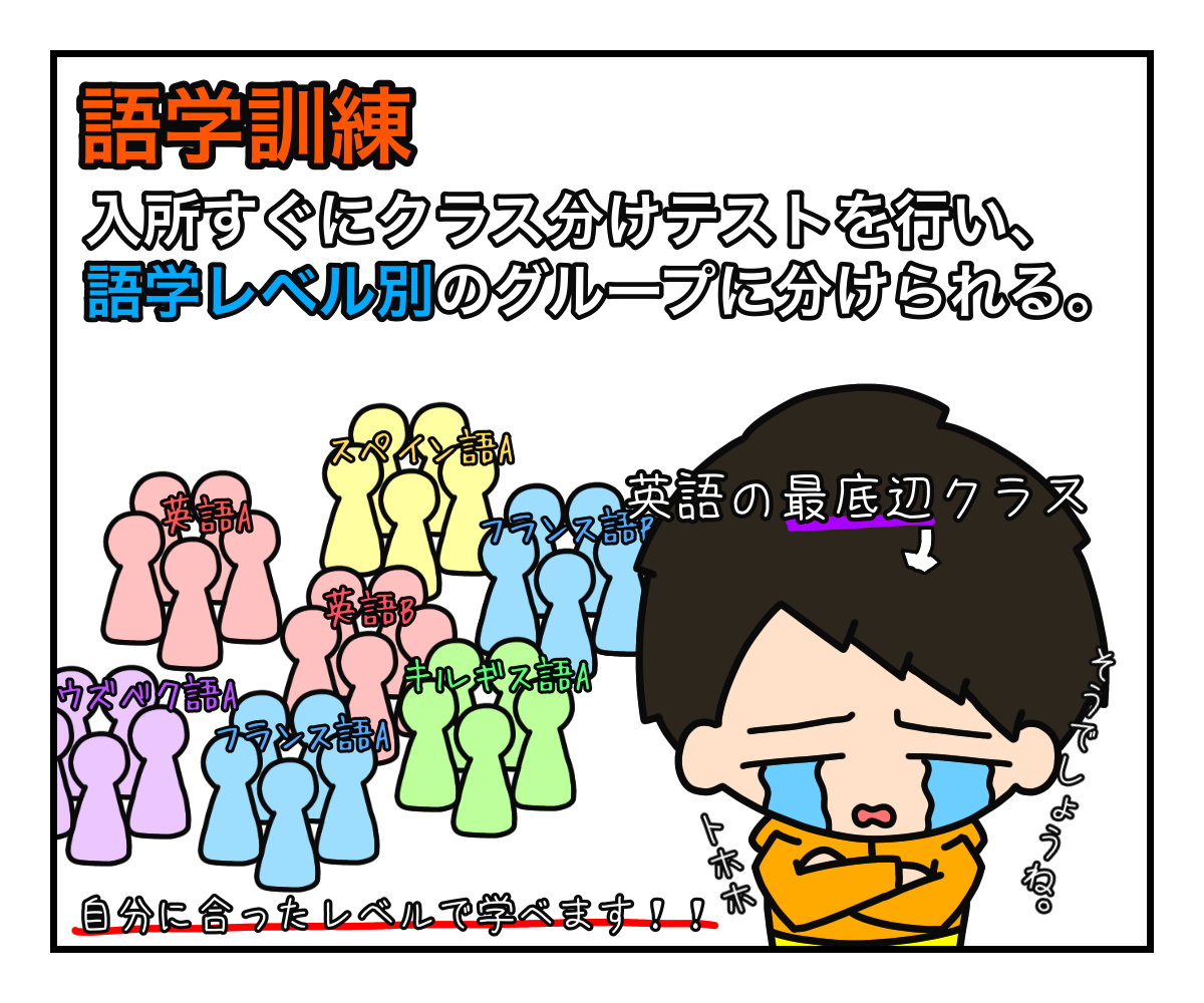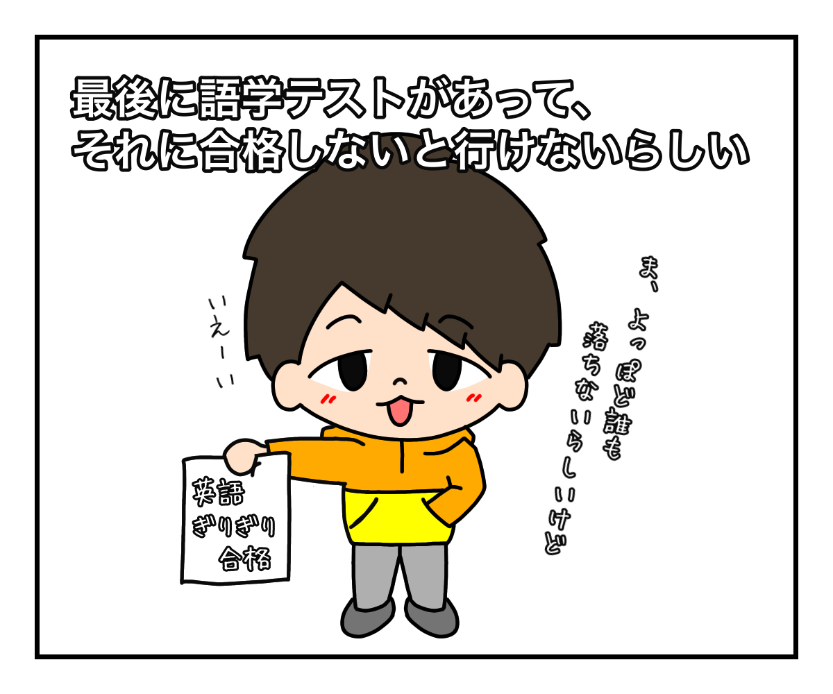 最後には語学テストがあり、これに合格しないと派遣国には行けないんだとか!