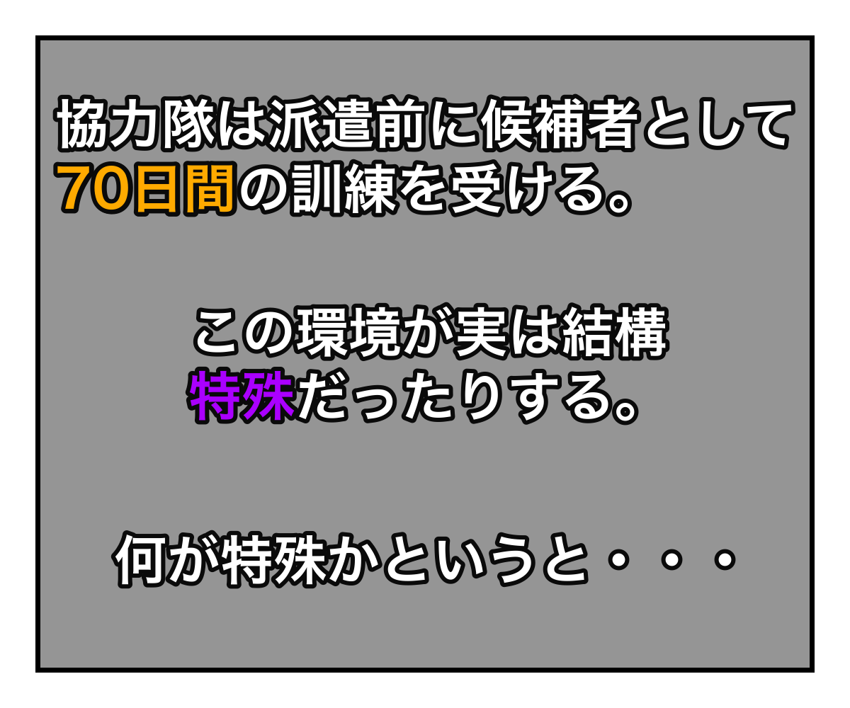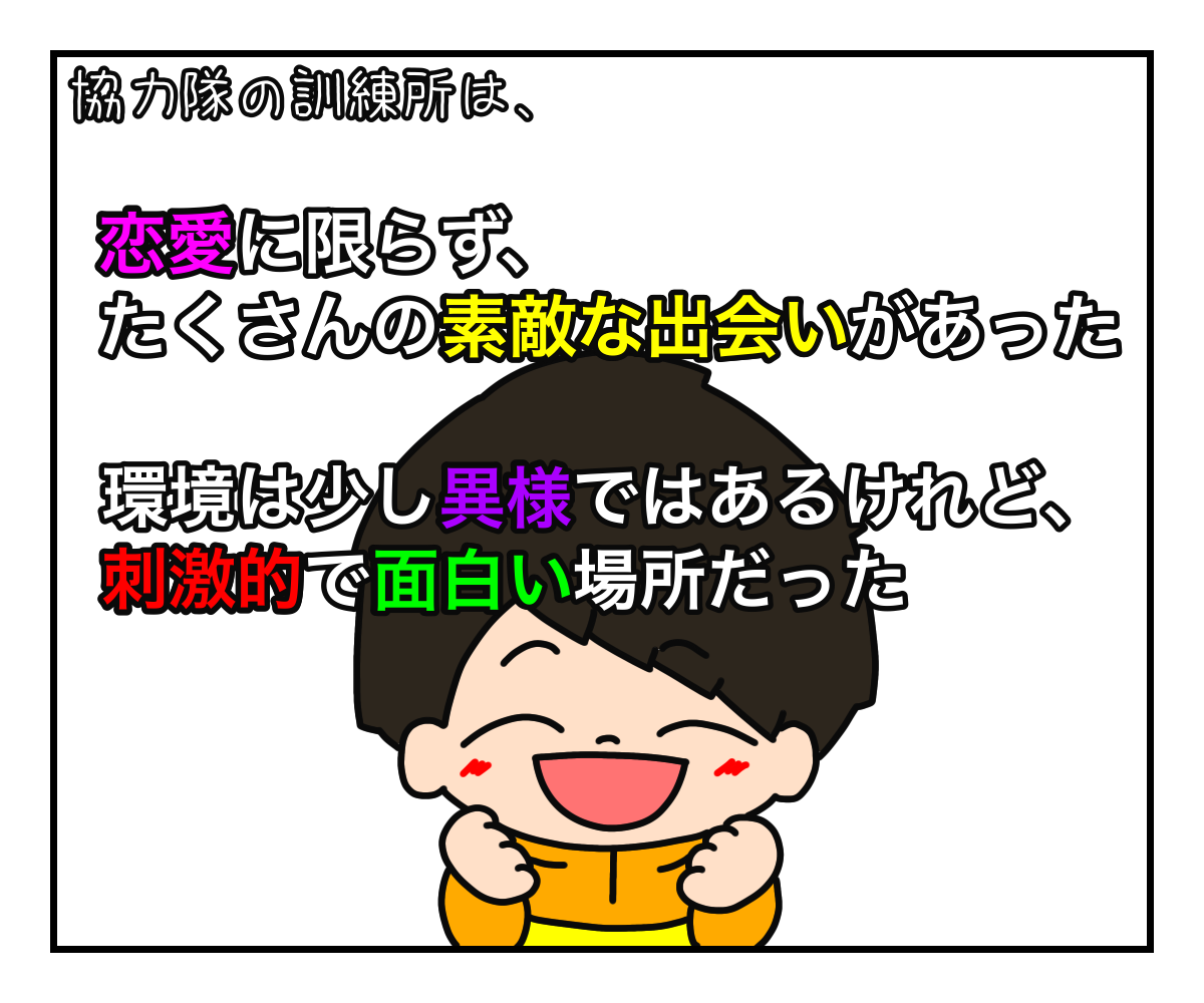 派遣前訓練という閉鎖された空間には、間違いなく色恋沙汰が多発するだけの環境があった。