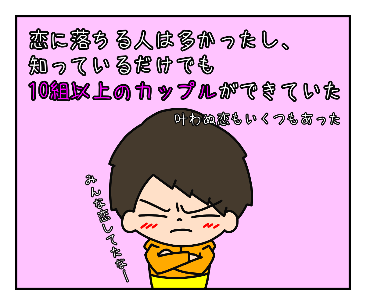 実際、自分の周りにも恋に落ちる人はたくさんいたし、知っているだけでも10組以上のカップルが誕生していた。