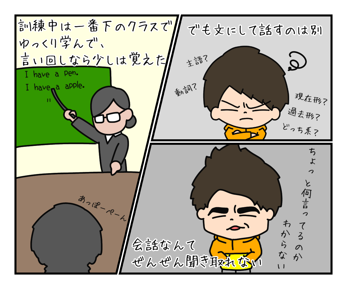 訓練中は最底辺のクラスでゆっくり学び、言い回しは少し覚えることができた。